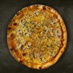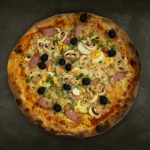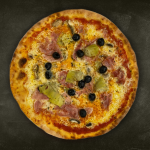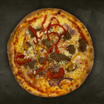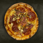 mit Schinken, Champignons, scharfer Salami und Peperoncini