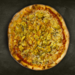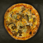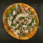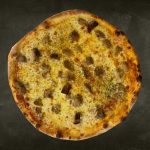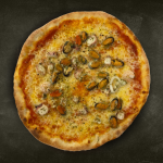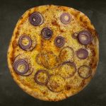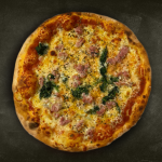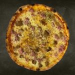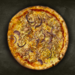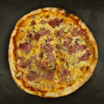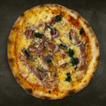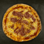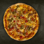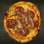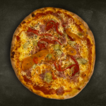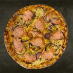 Rahm, Tomaten, Speck, Scharfer Salami, Zwiebeln.