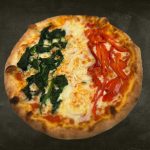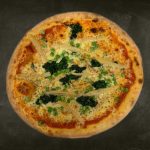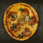 mit scharfe Salami, Spinat, Parmesan und Rahm