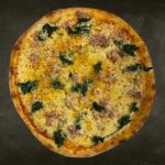 mit Speck, Spinat, Zwiebeln und Knoblauch